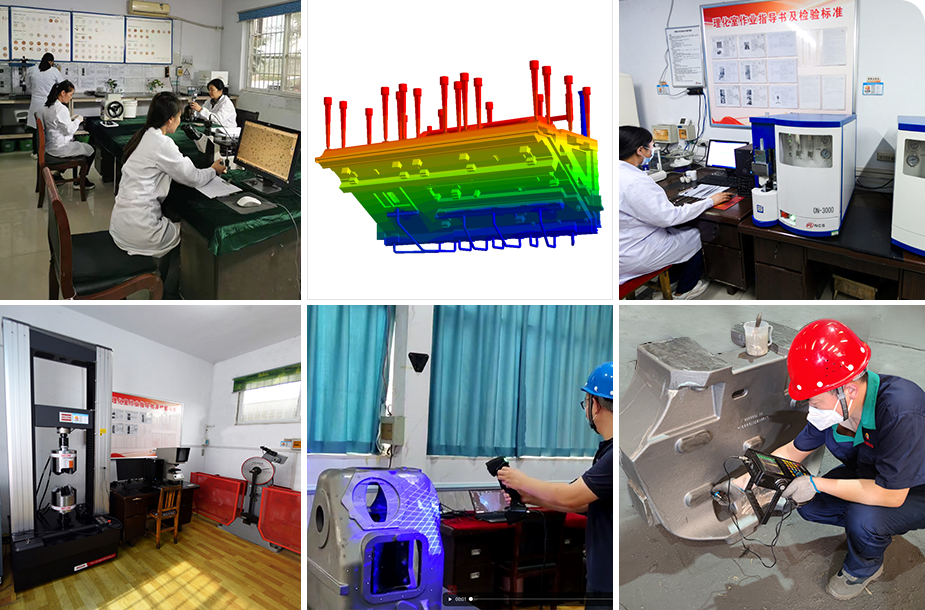 公司建立的化學(xué)分析實(shí)驗(yàn)室、物理性能檢測實(shí)驗(yàn)室擁有直讀光譜儀、碳硅分析儀、金相顯微鏡(倒置式/便攜式)、萬能材料試驗(yàn)機(jī)、高頻紅外碳硫分析儀、氮氧分析儀、型砂高溫分析儀、3D尺寸掃描儀、低溫沖擊試驗(yàn)機(jī),超聲波、磁粉、著色等無損檢測儀,爐前/后理化分析儀等設(shè)備。